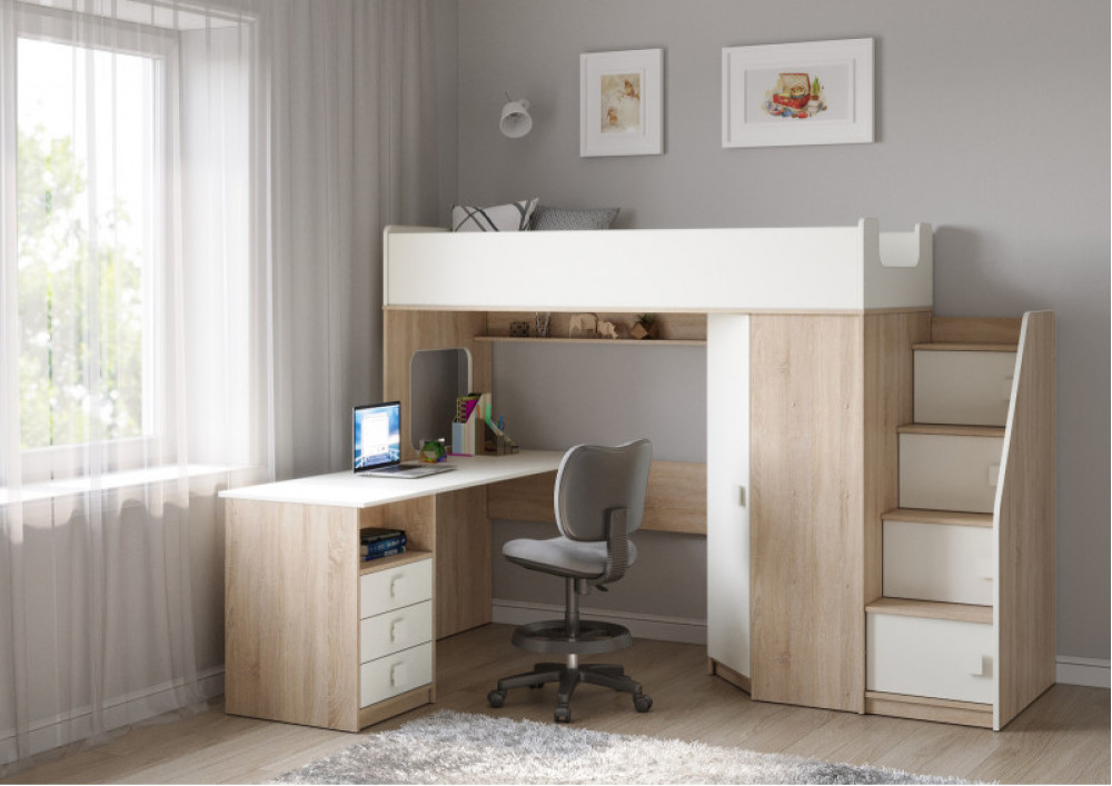 Учебная зона со столом под спальным местом открывает возможности для письменных работ, а также здесь удобно расположить ноутбук.