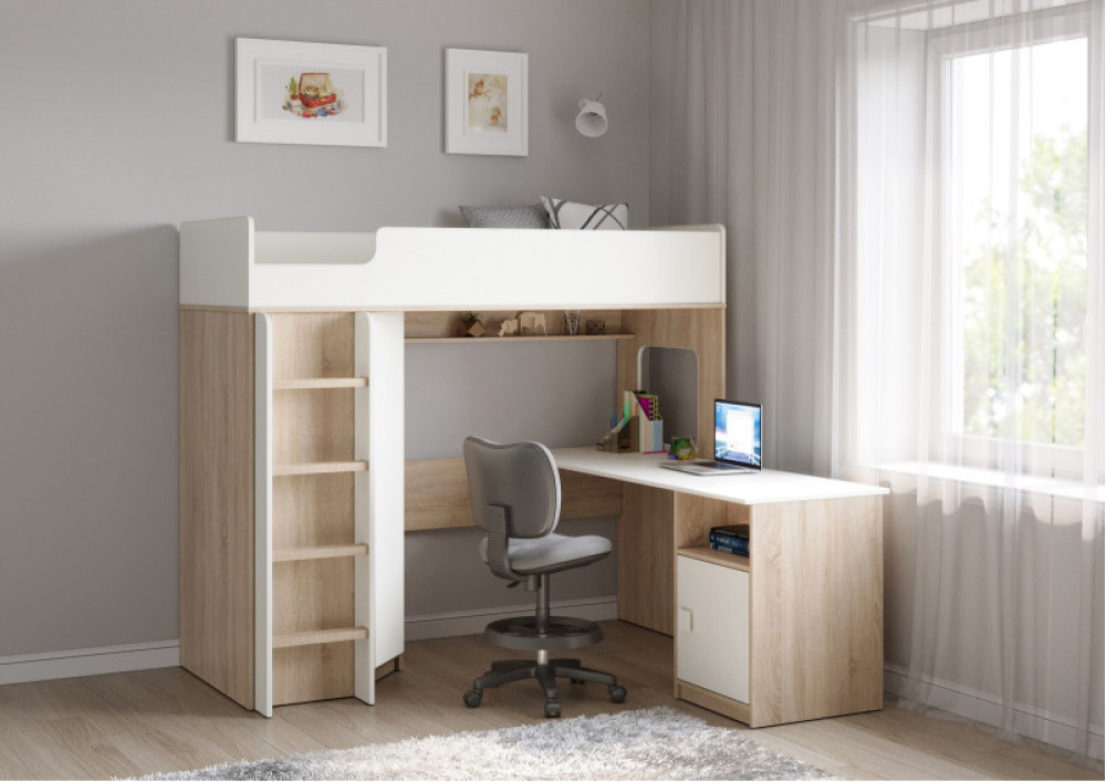 Учебная зона со столом под спальным местом открывает возможности для письменных работ,а также здесь удобно расположить ноутбук.