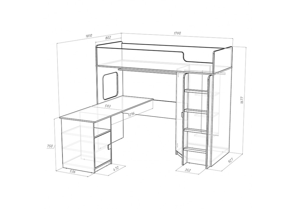 Высота кровати чердака всего 1677 мм.