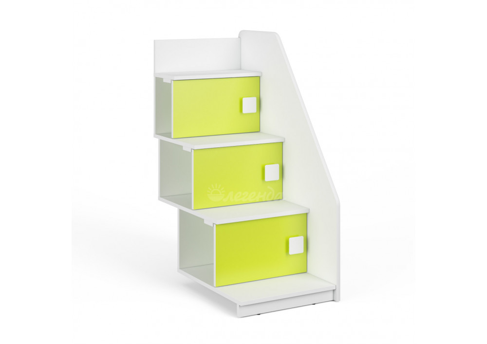 Лестница средней величины из трех ступенек,сочетается с невысокими кроватями-чердаками. Предназначена для боковой установки к кровати.