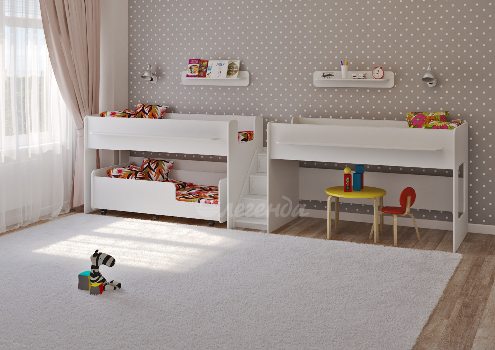 Выкатная кровать Легенда 23.5 белая - интересный и оригинальный комплект для троих детей.